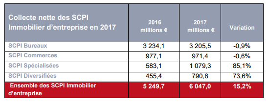 SCPI Immobilier d’entreprise : rendements 2017 de nouveau en baisse de -5%, nouveau record de collecte, un haut de cycle ?